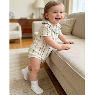 胸元の刺繍やデザインがとっても可愛くて、上品で素敵なロンパースです。
