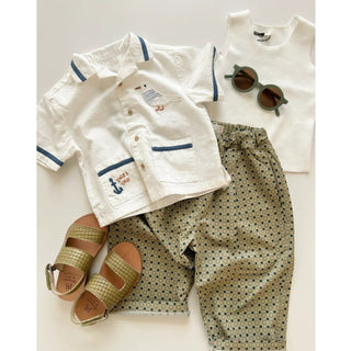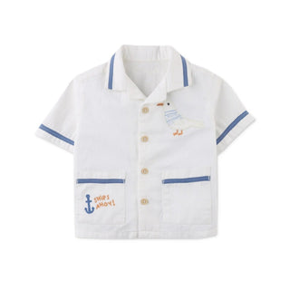生後9ヶ月男の子ベビー(80cmがジャストサイズ)に90cmを購入しました!こちらのセットアップを着てお出かけすると必ず「かわいい!どこのお洋服ですか?」って聞かれます🥰襟がセーラー服みたいでとっても可愛くて、海の生き物たちのプリントもオシャレです!!見た目だけではなく、生地もコットンで薄地。真夏で外遊びして汗をかいても乾きやすそうで、これから動きが活発になるベビーにぴったりだなぁと思います🥺♡