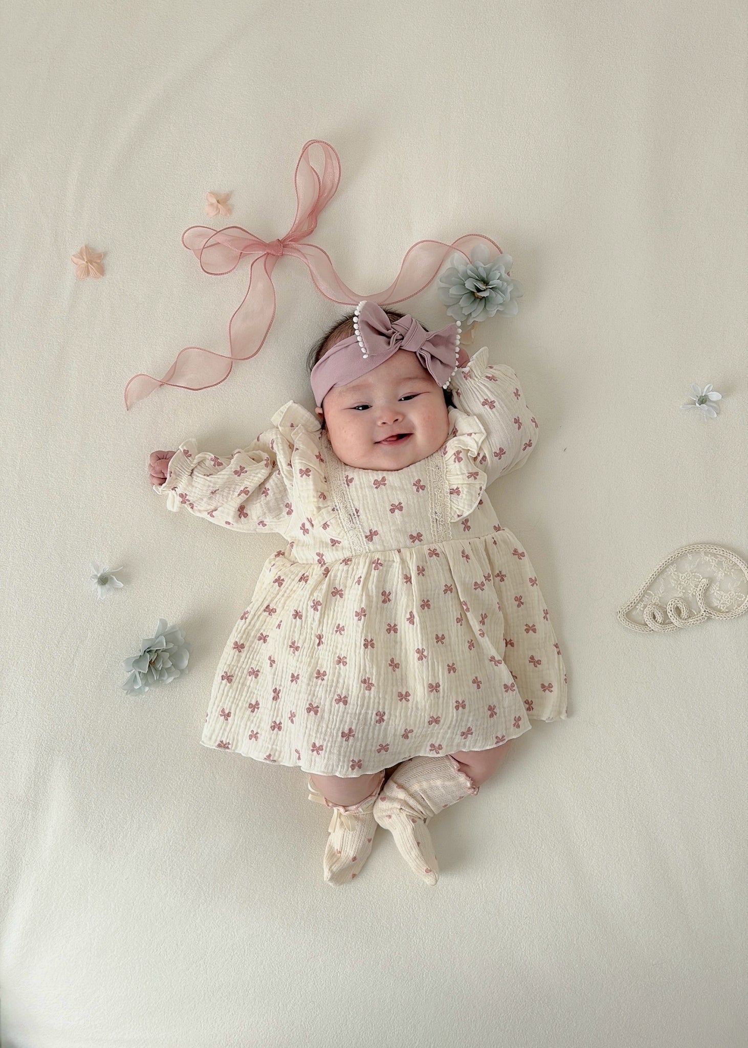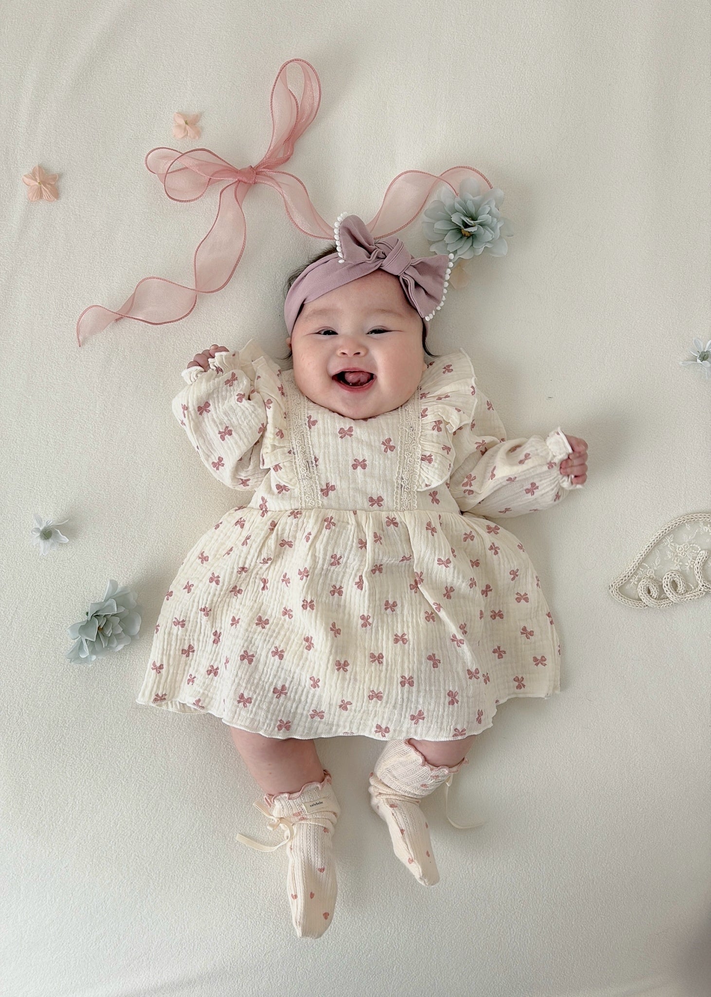 全体にあしらわれたミニリボン柄が、可憐な雰囲気を演出します♡