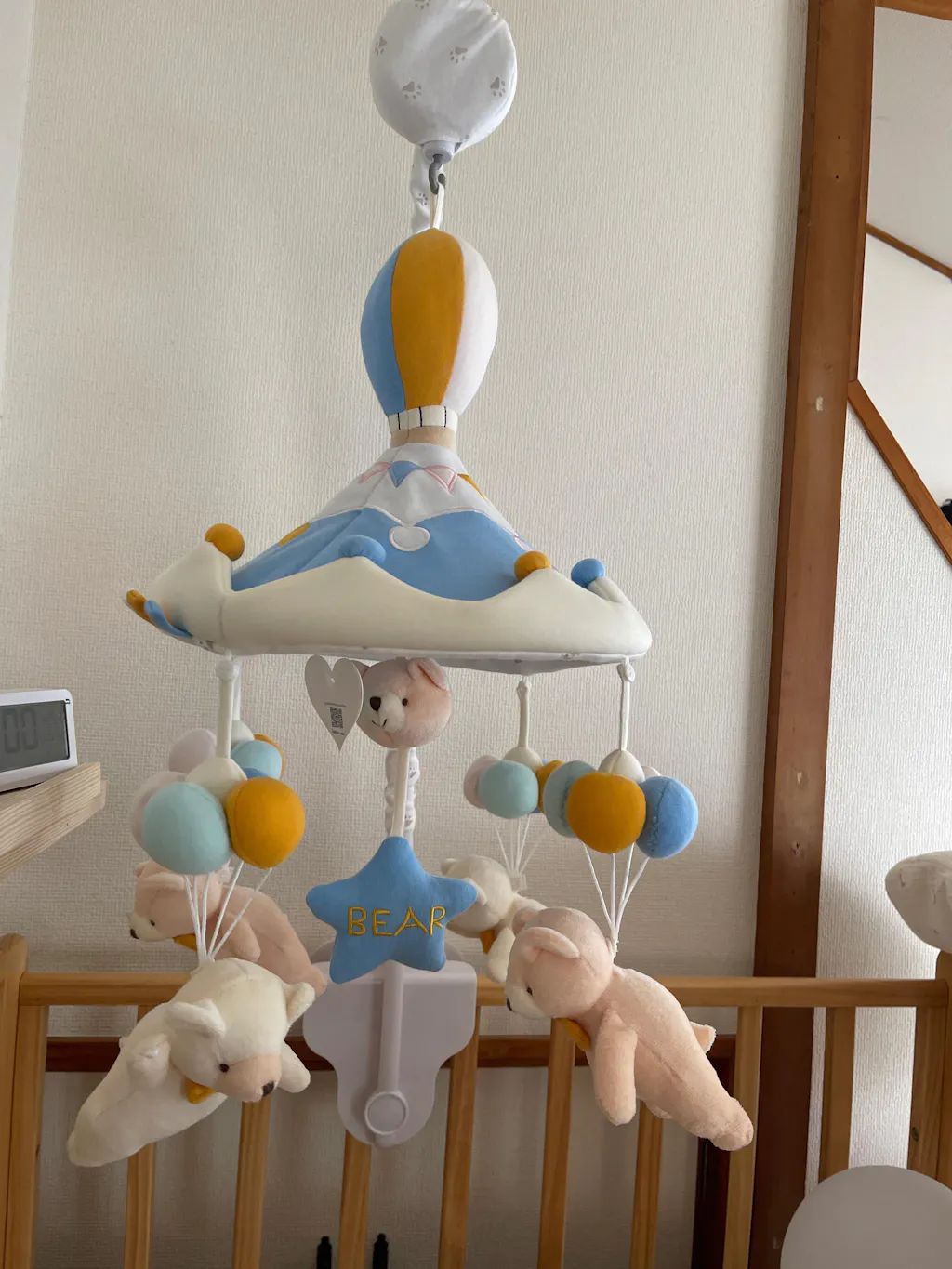 くるくる回るくまちゃんと、優しいオルゴールの音色で赤ちゃんが泣き止みます。