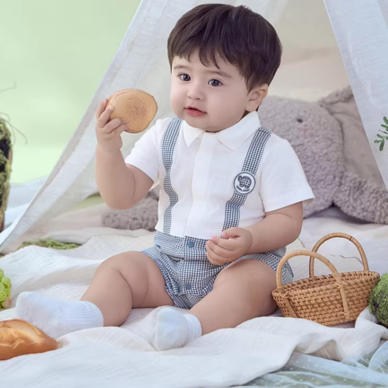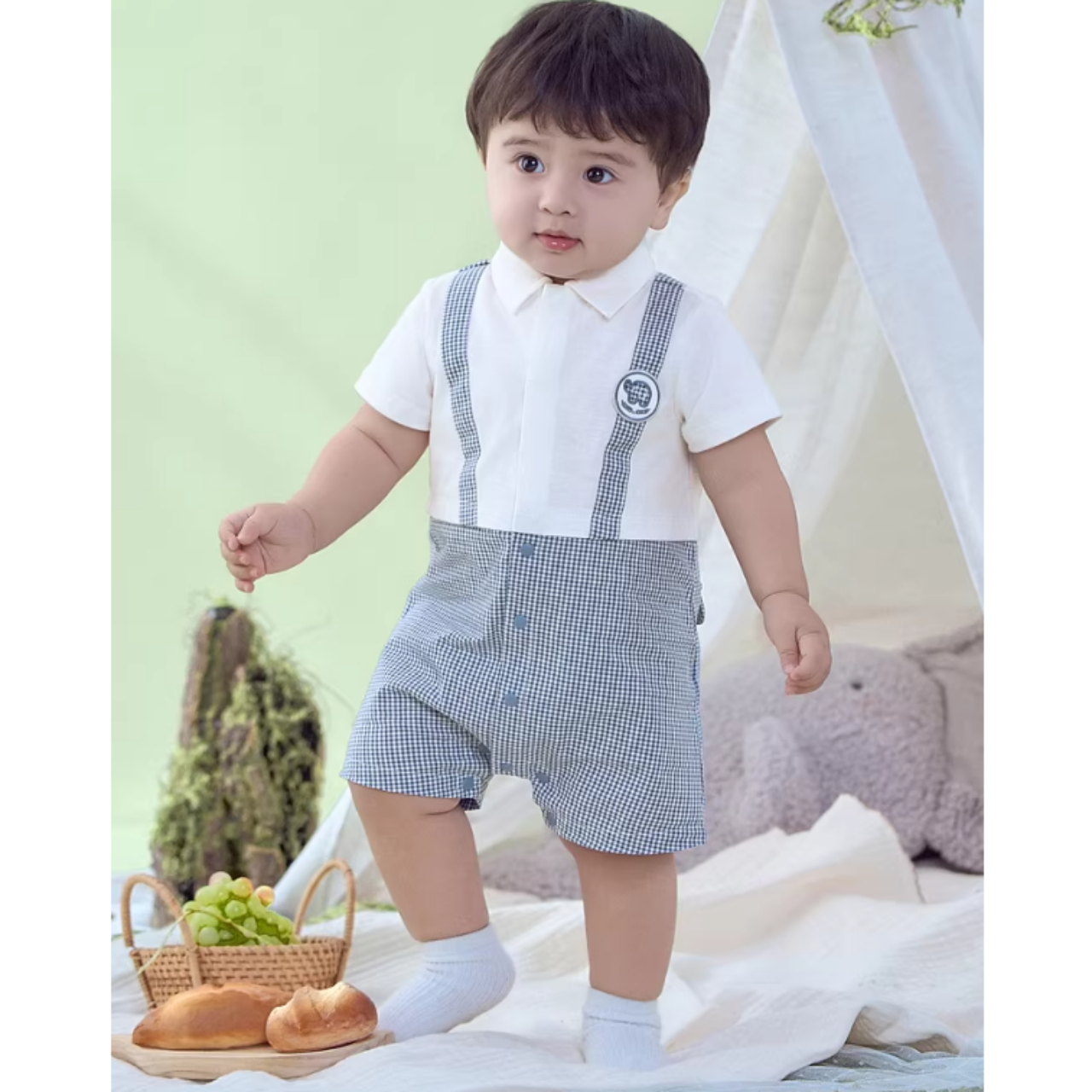 ギンガムチェックカラーが爽やかで可愛すぎるロンパース