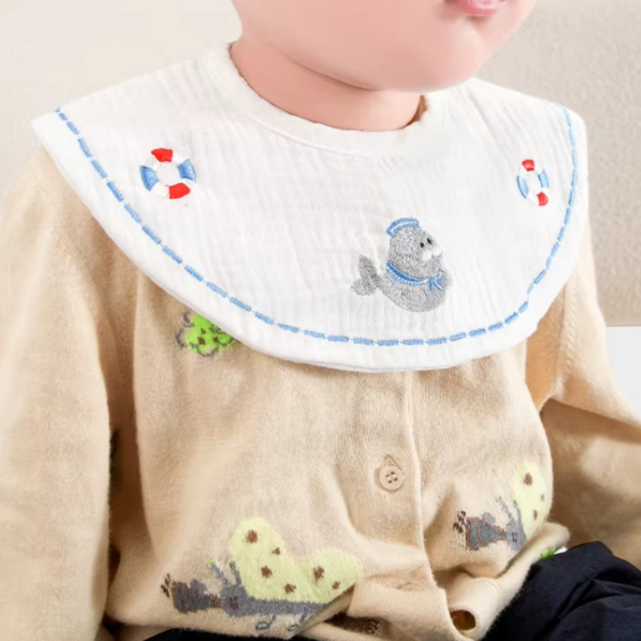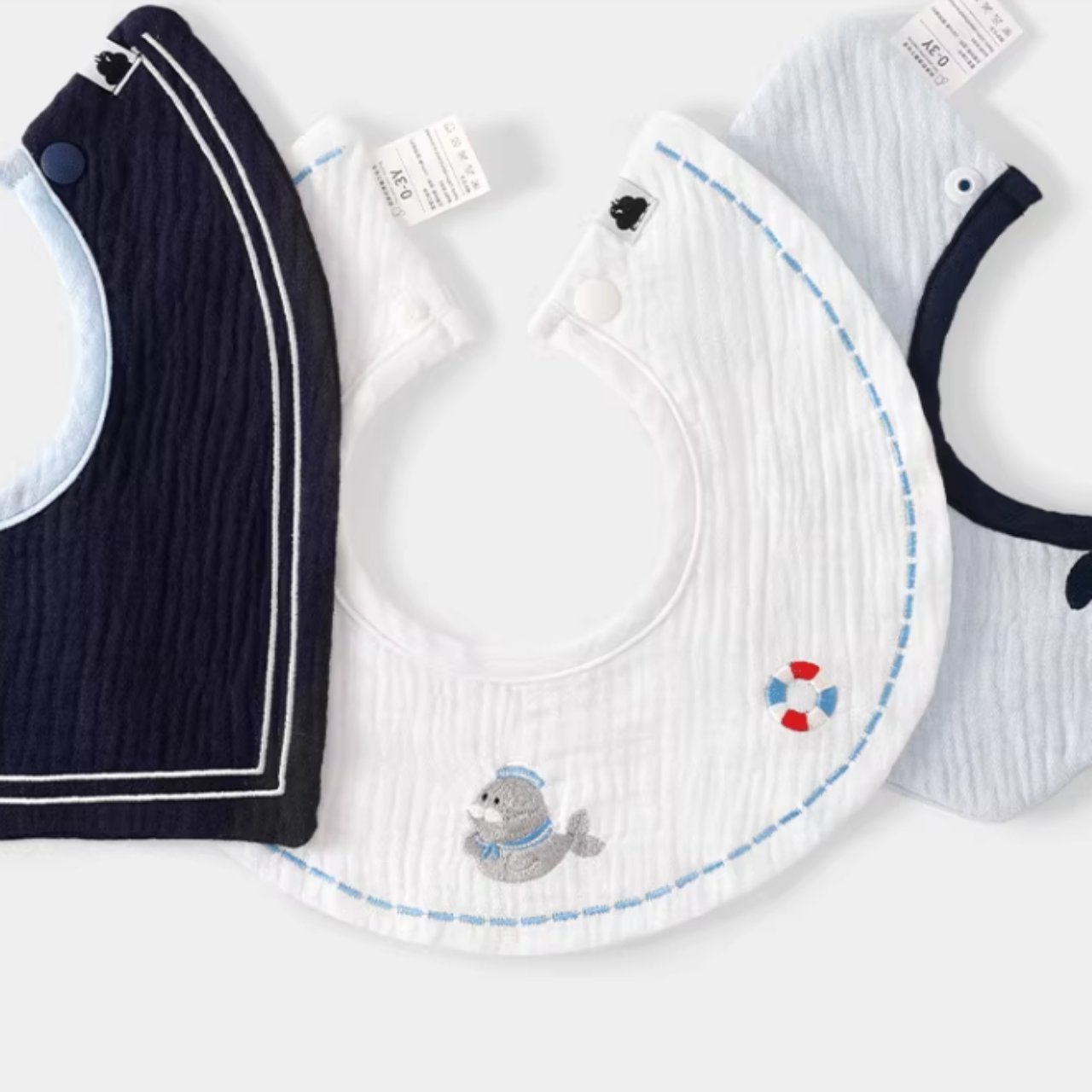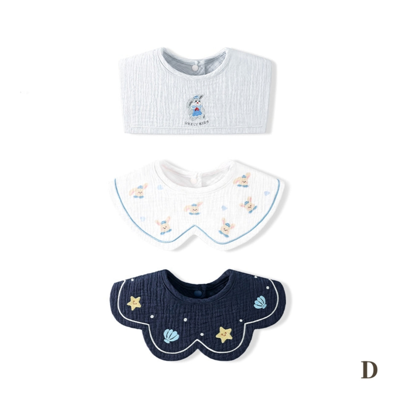 デザイン違いが楽しめる、便利な3枚セットのスタイ。
