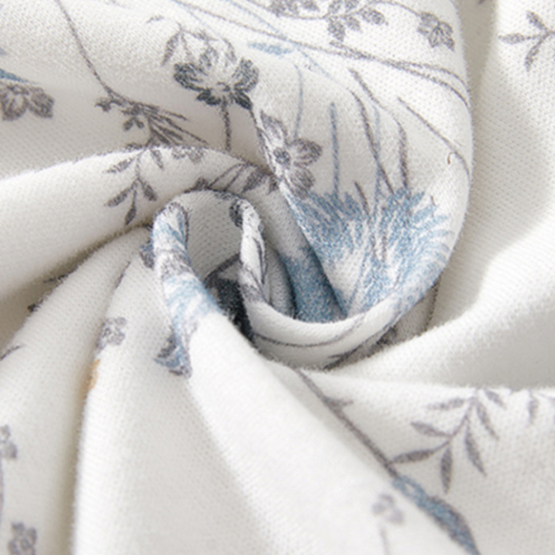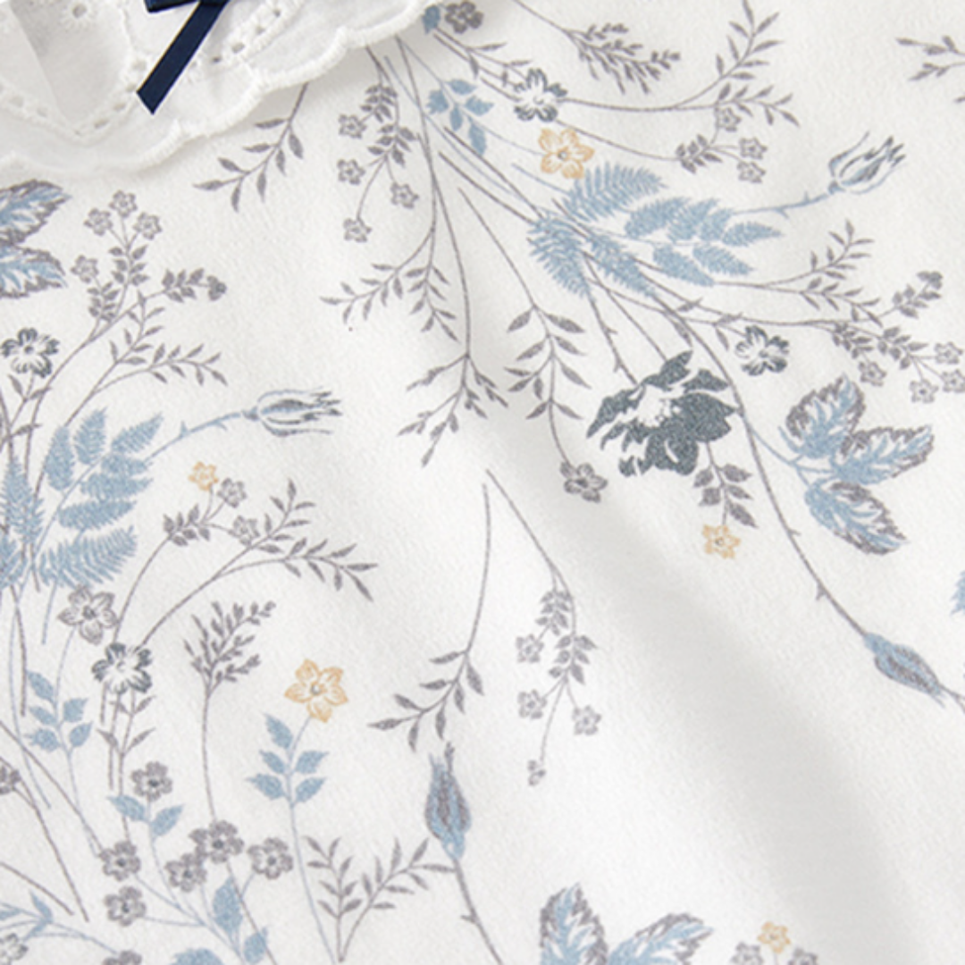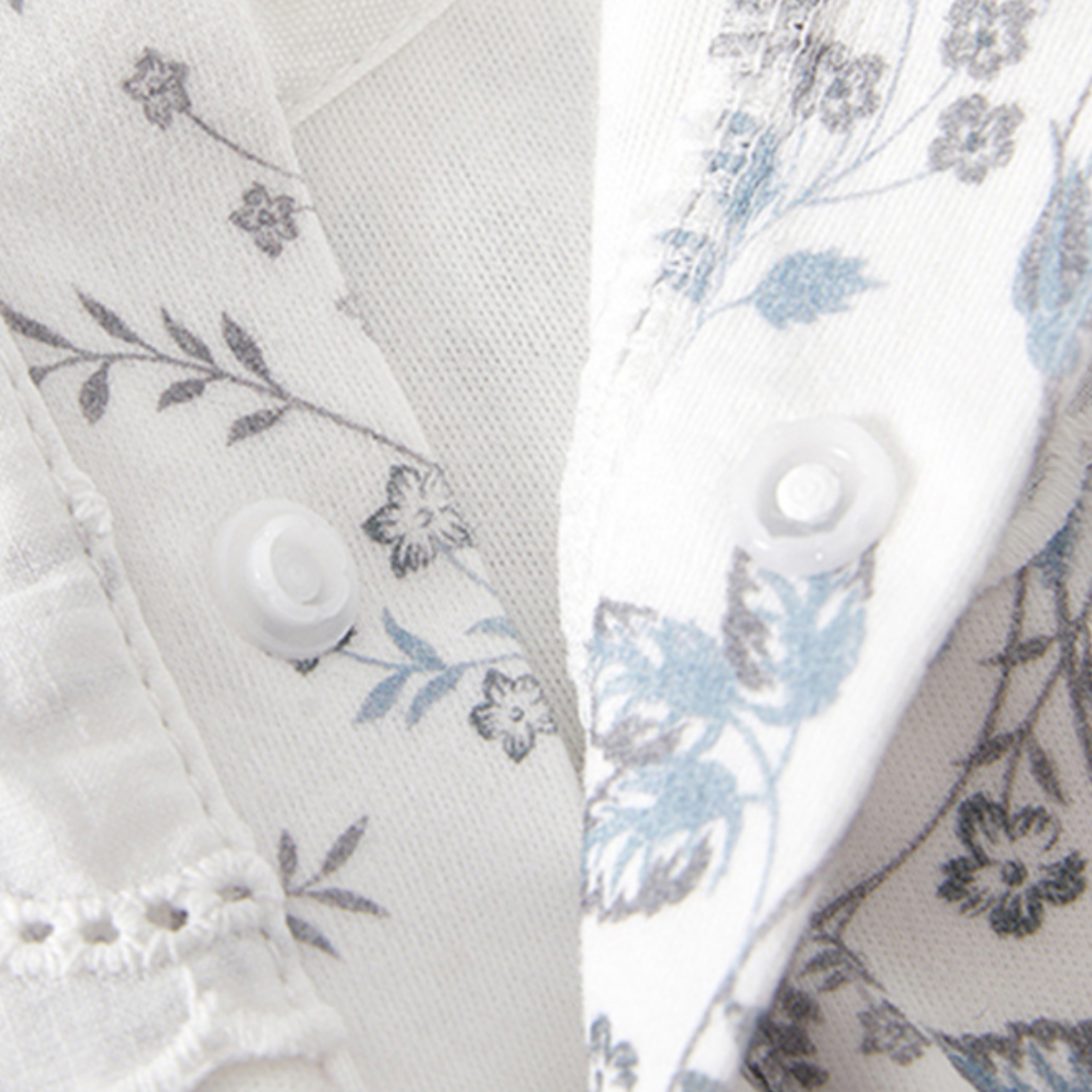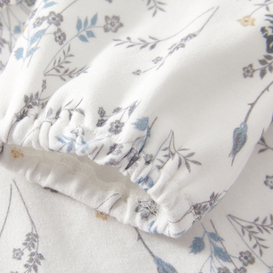ホワイトを基調にした上品な花柄が魅力のロンパース。
