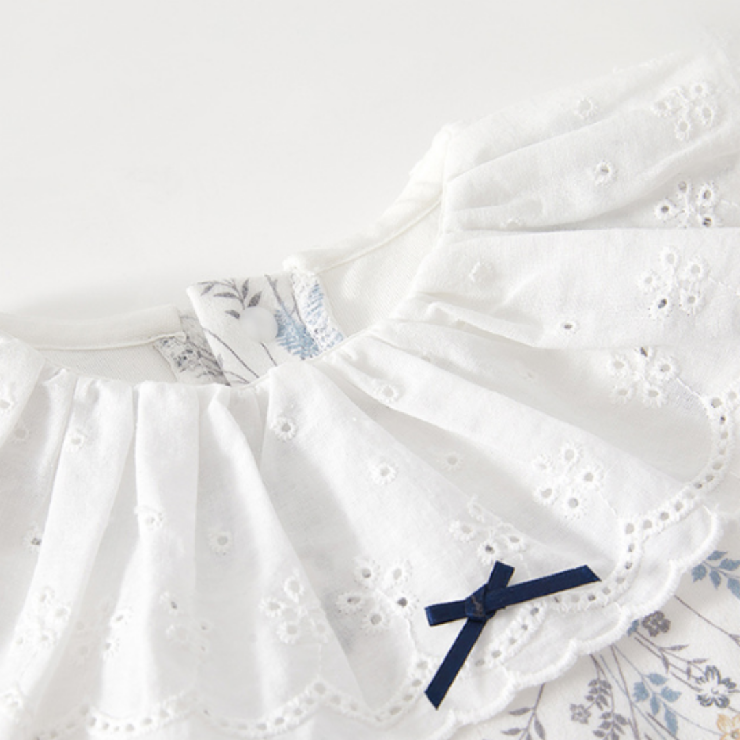 大きなレース襟がエレガントな印象を添え、特別な日のおめかしにもぴったり♡