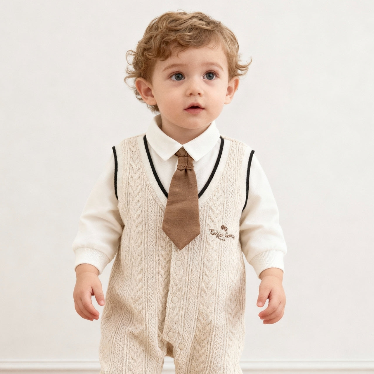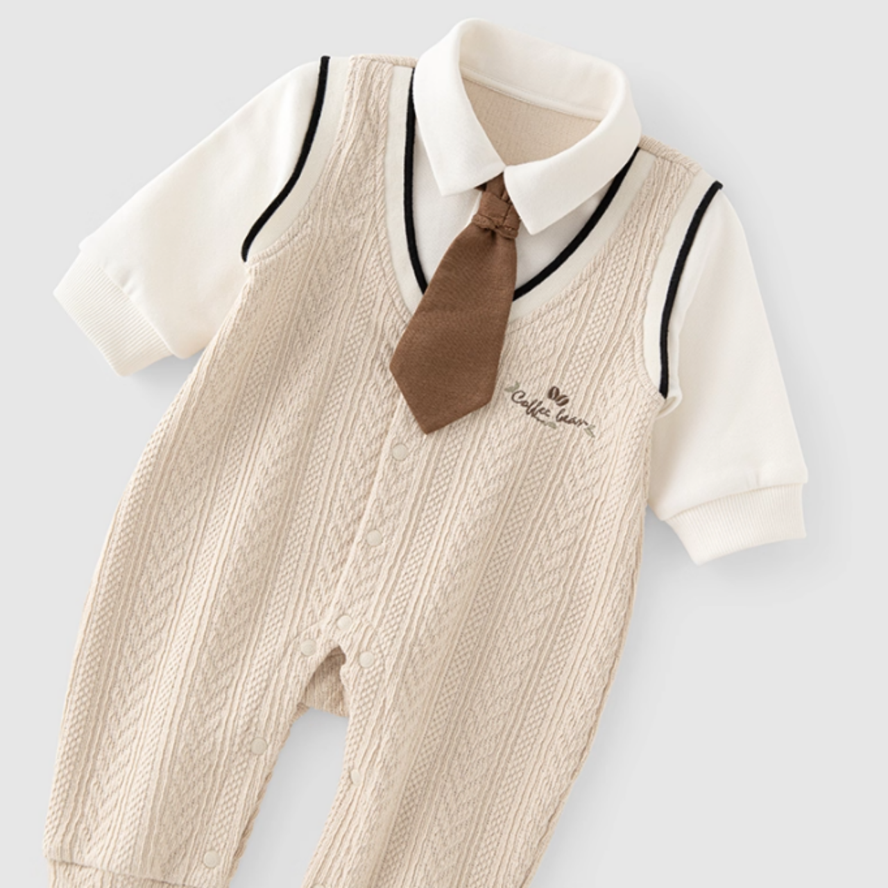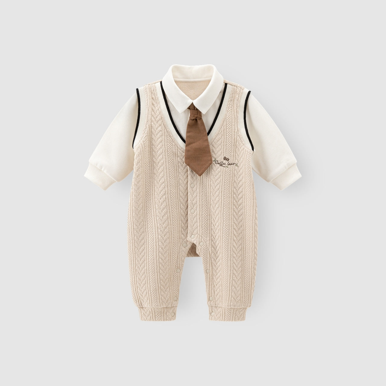 ベージュネクタイフォーマルロンパース