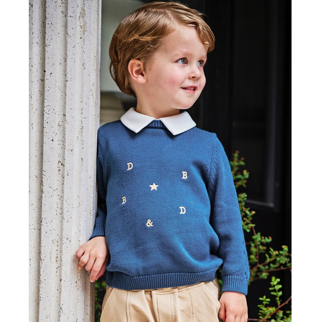アルファベット刺繍がアクセントになった、上品でおしゃれなセーター。