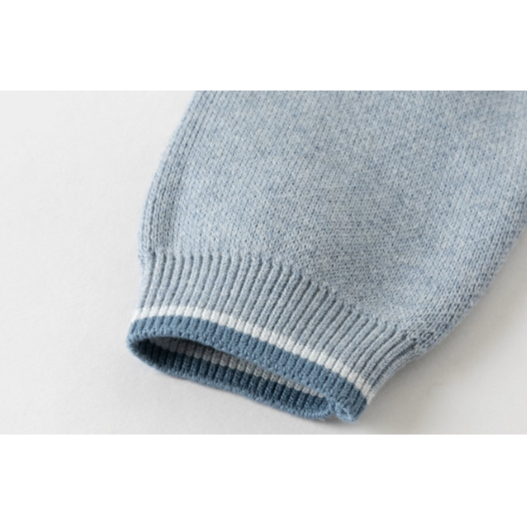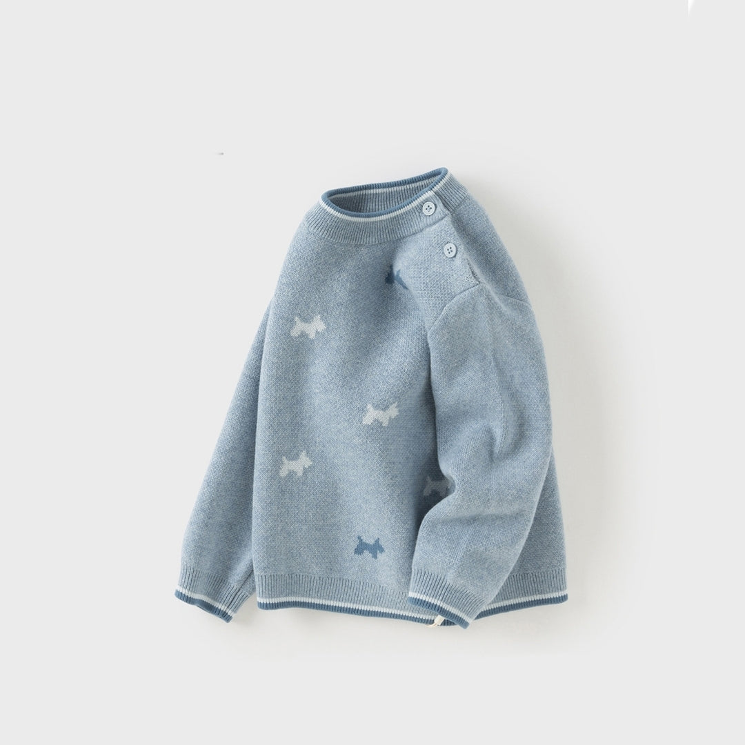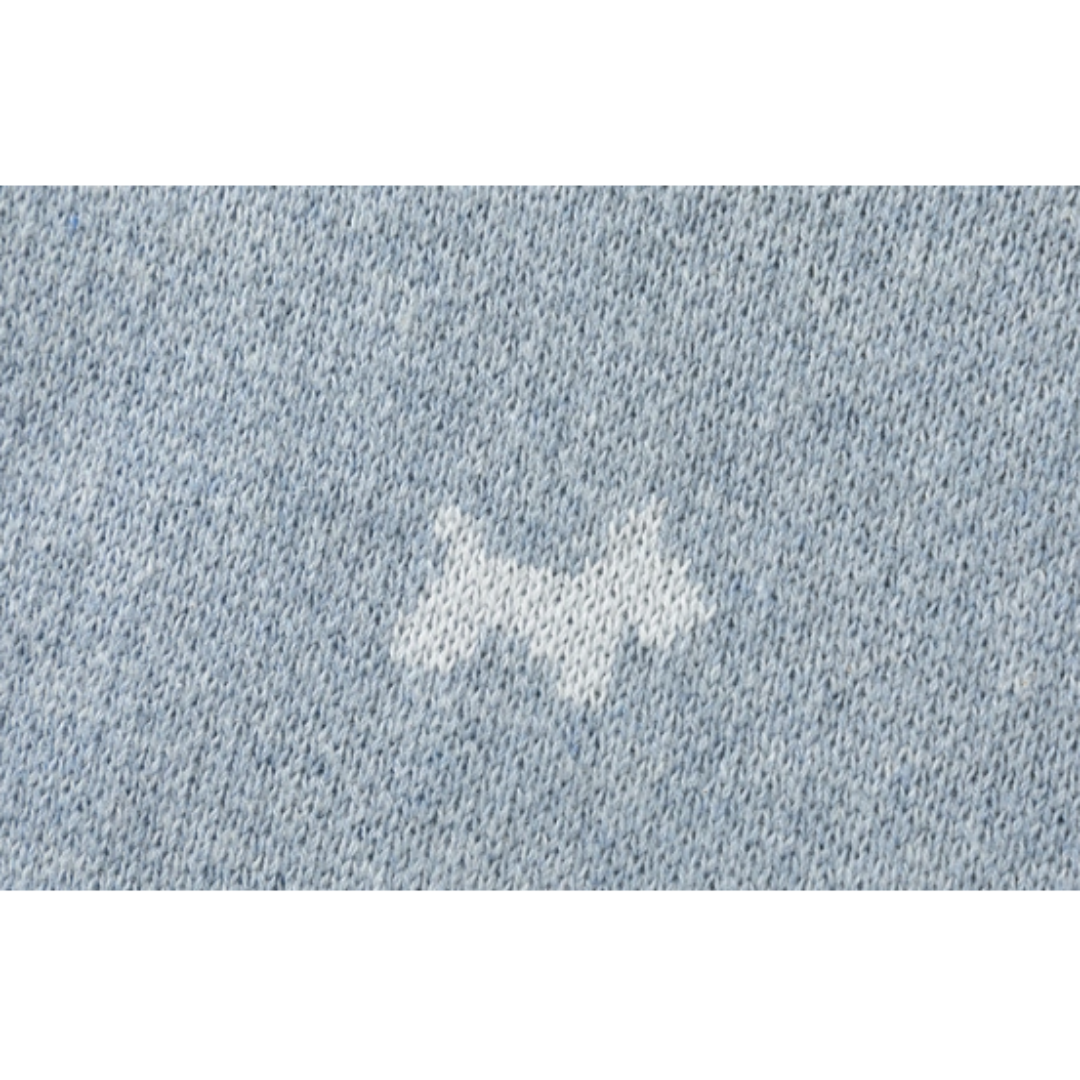 上品なブルーカラーに、さりげないドッグ柄がかわいいニットセーター。
