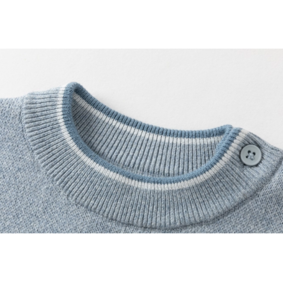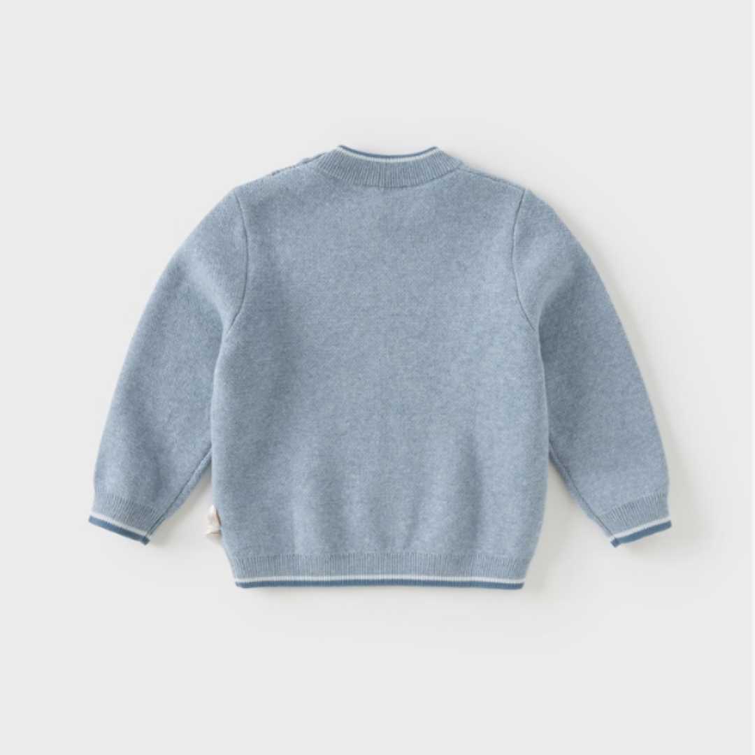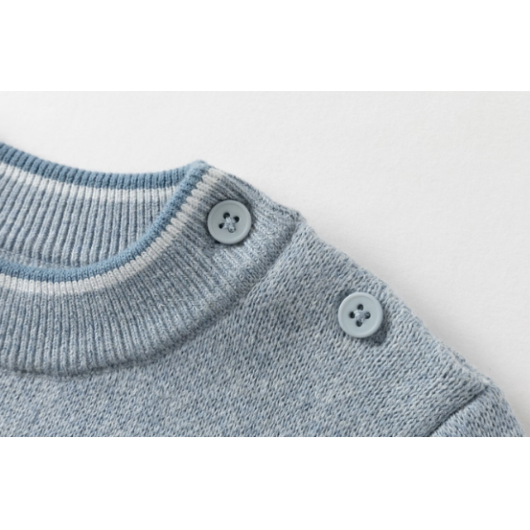 上品なブルーカラーに、さりげないドッグ柄がかわいいニットセーター。