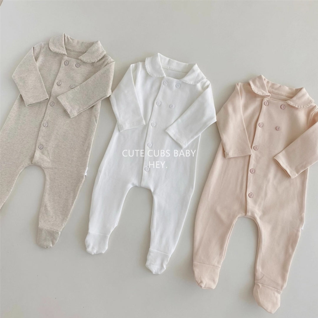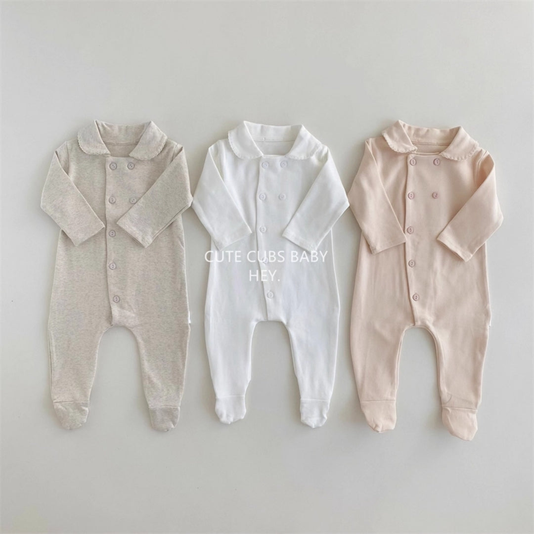 上品なダブルボタンデザインがおしゃれなロンパース♪