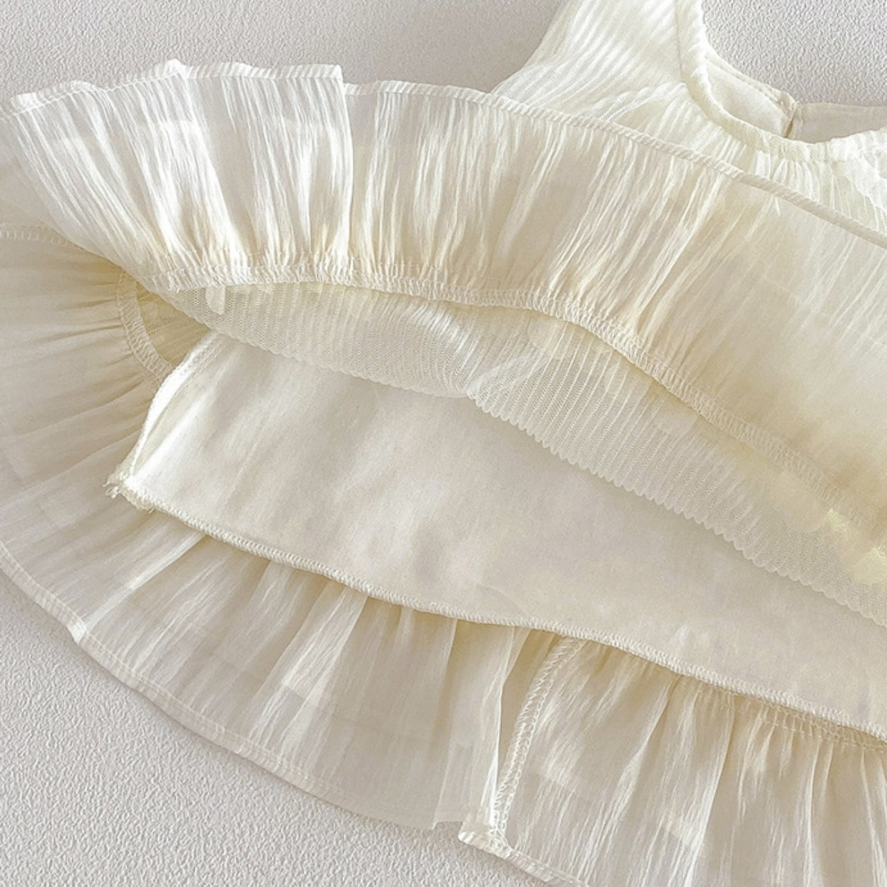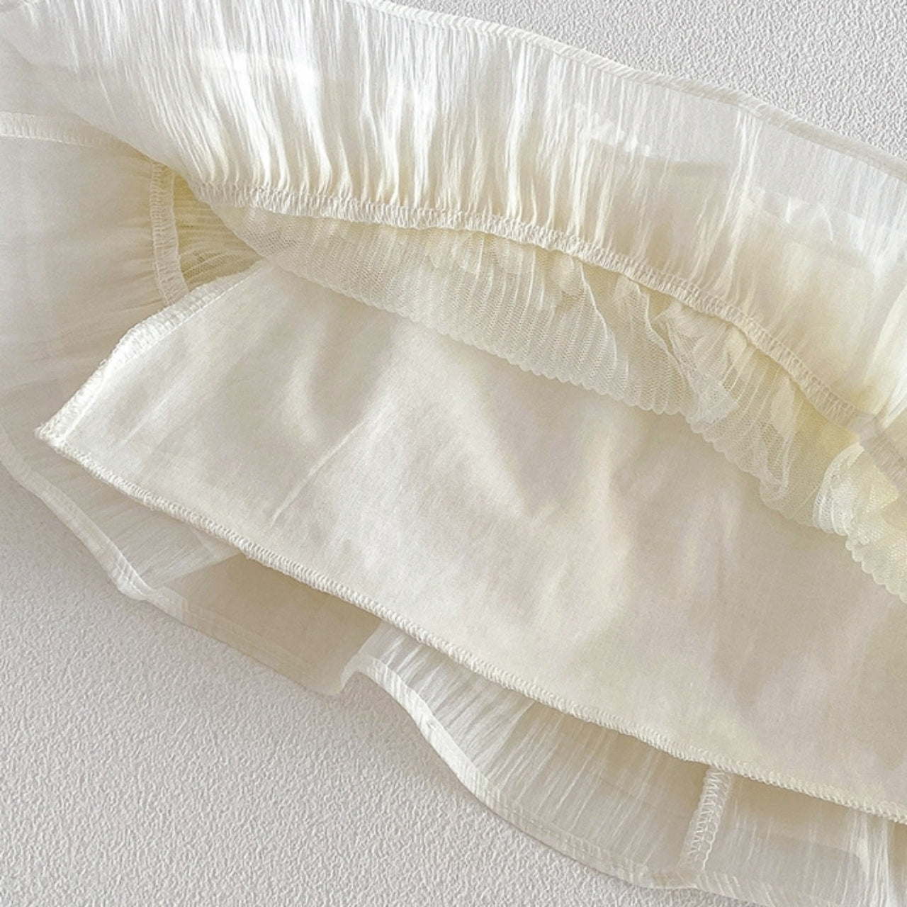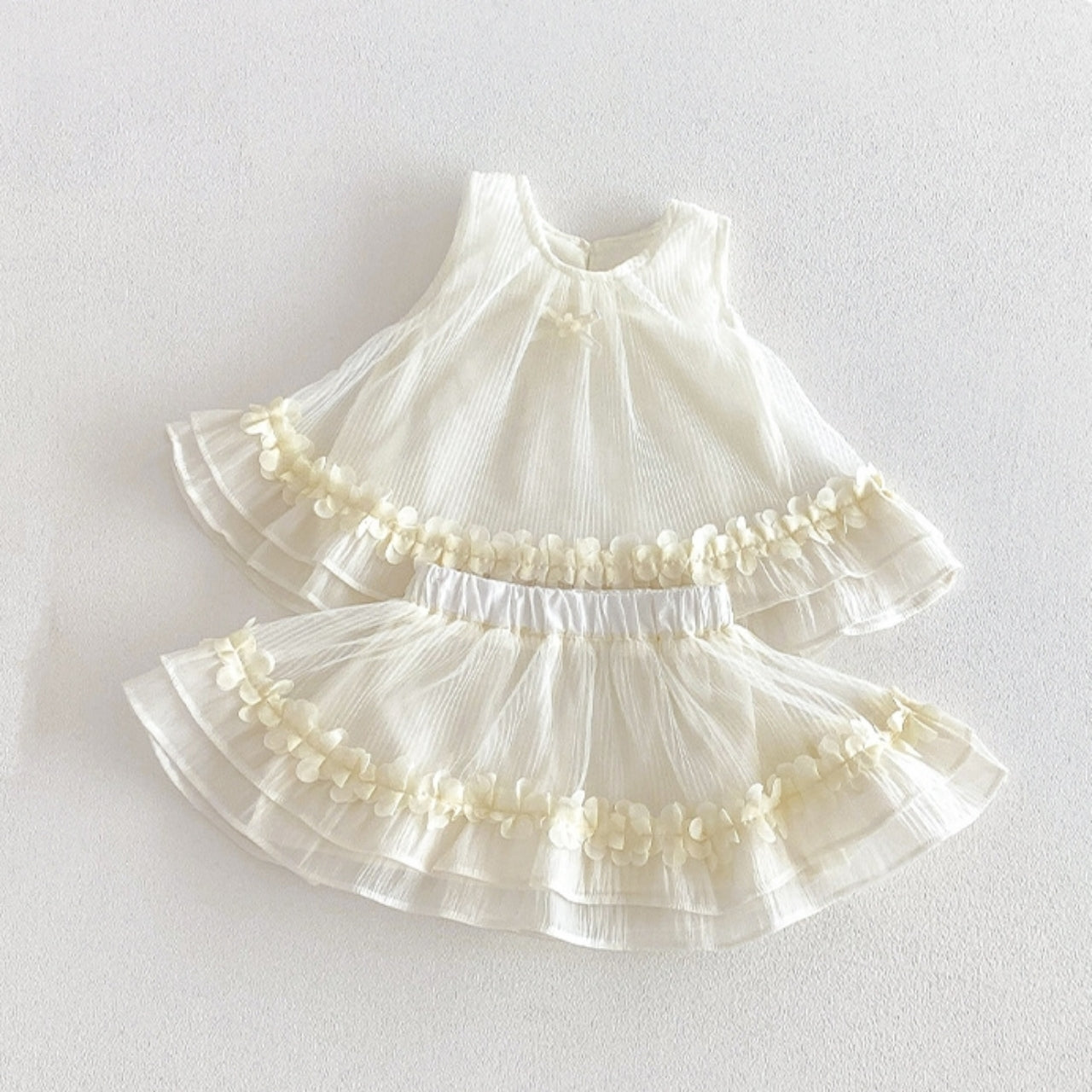 シアー感のある素材が涼しげな印象のセットアップ。