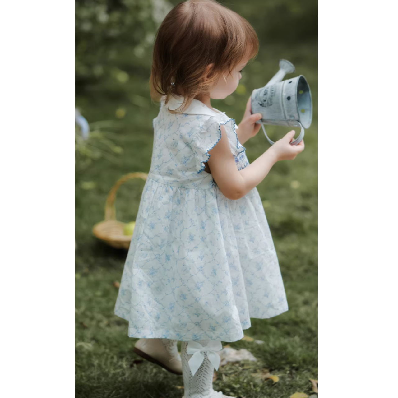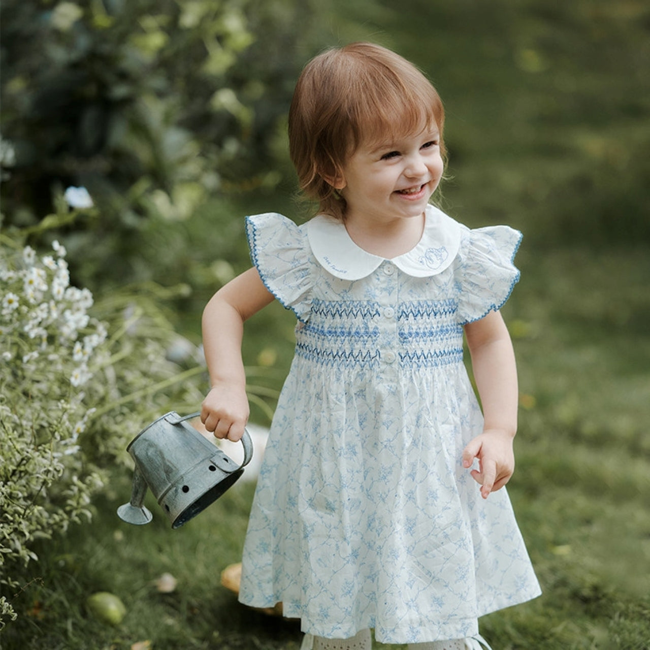 スティッチングブルーフラワーワンピース 80cm~120cm