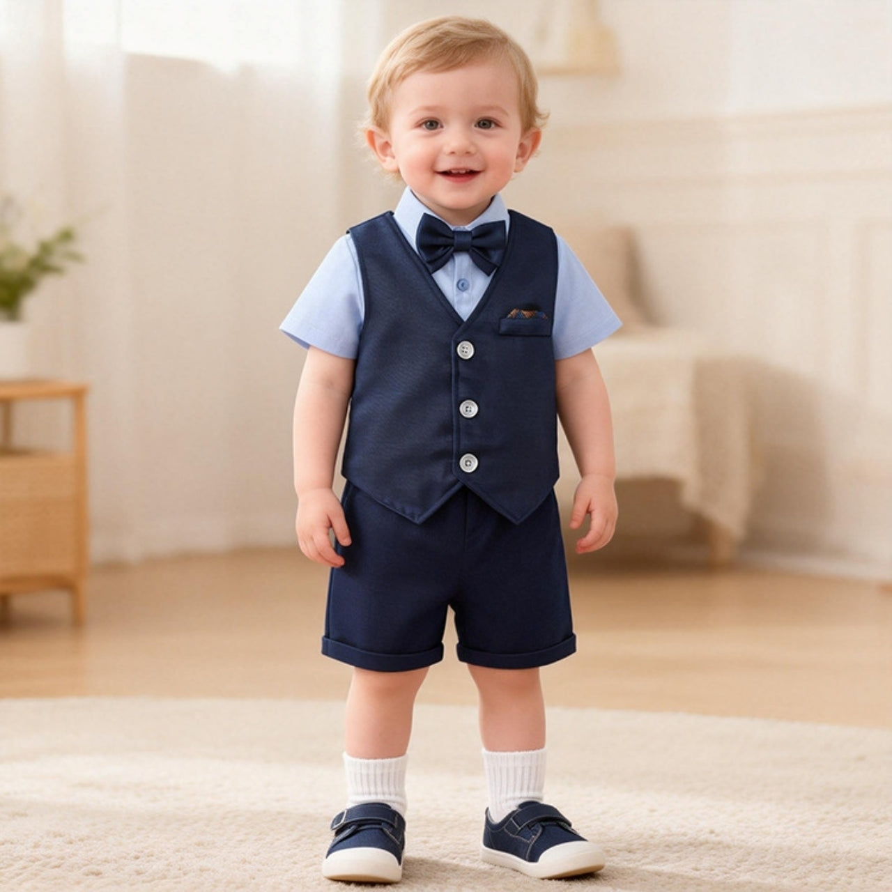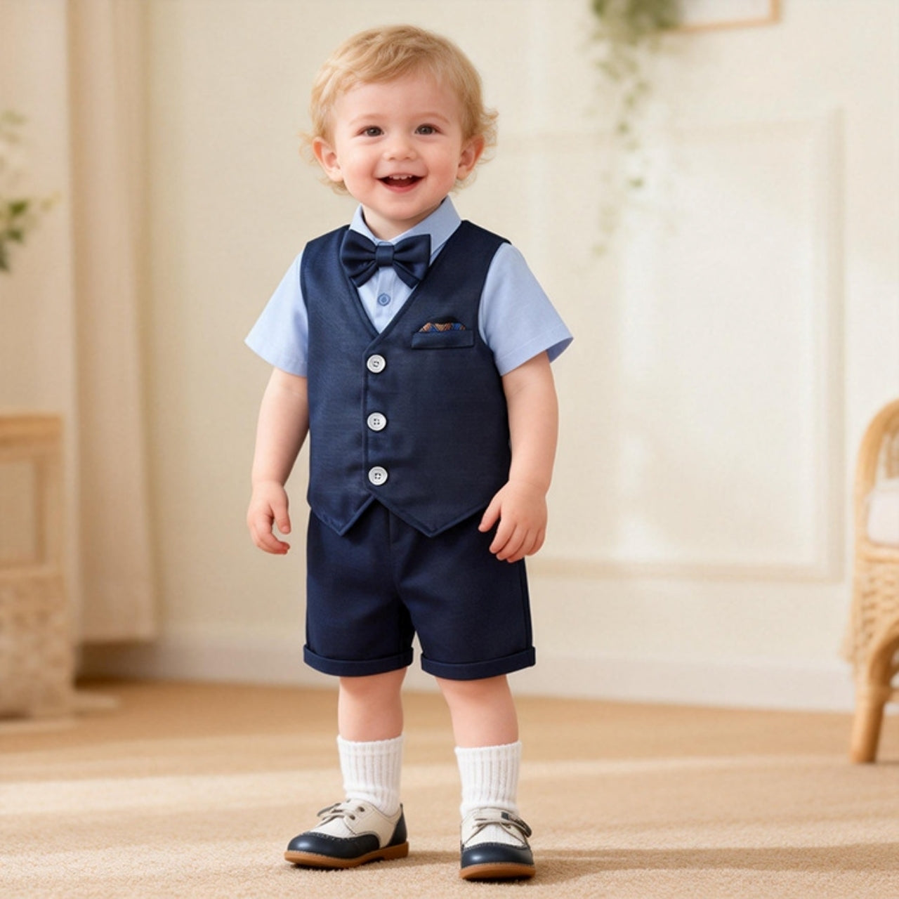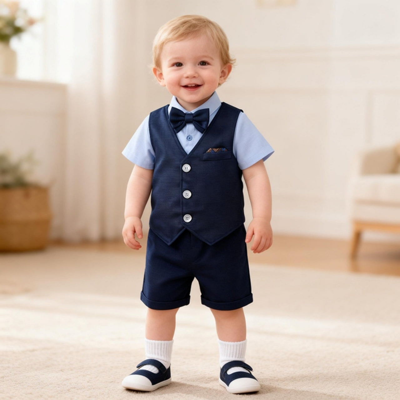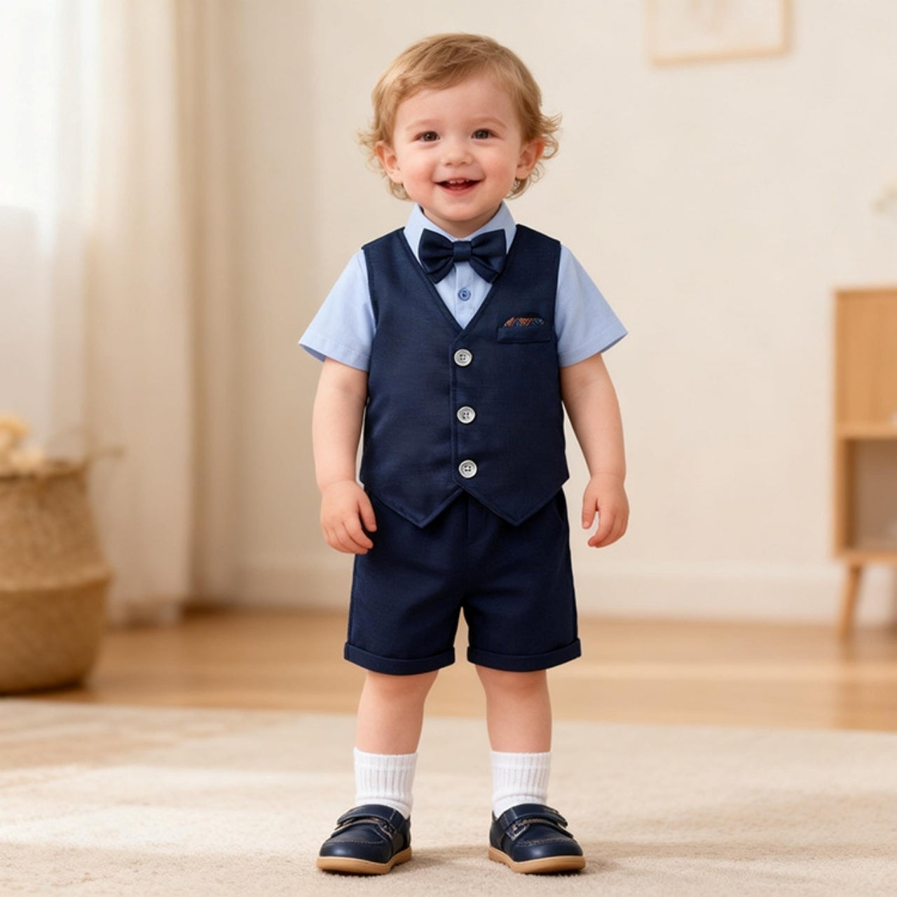 半袖シャツとベスト、半ズボンが揃ったきちんと感のある3点セットです♡
