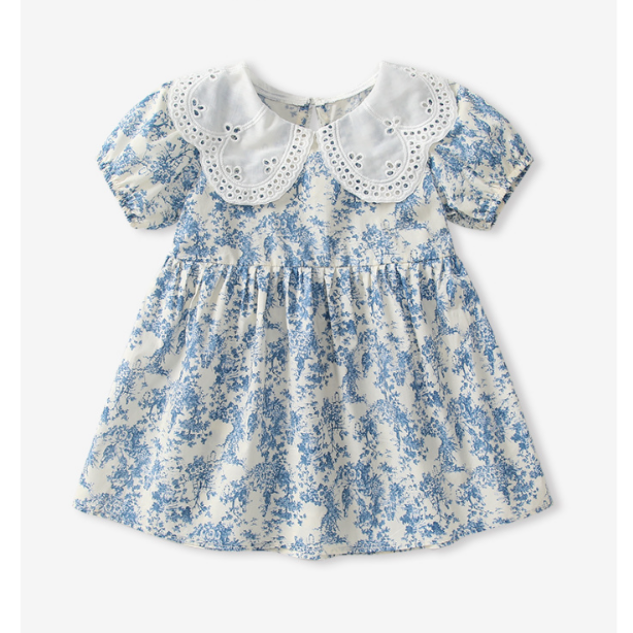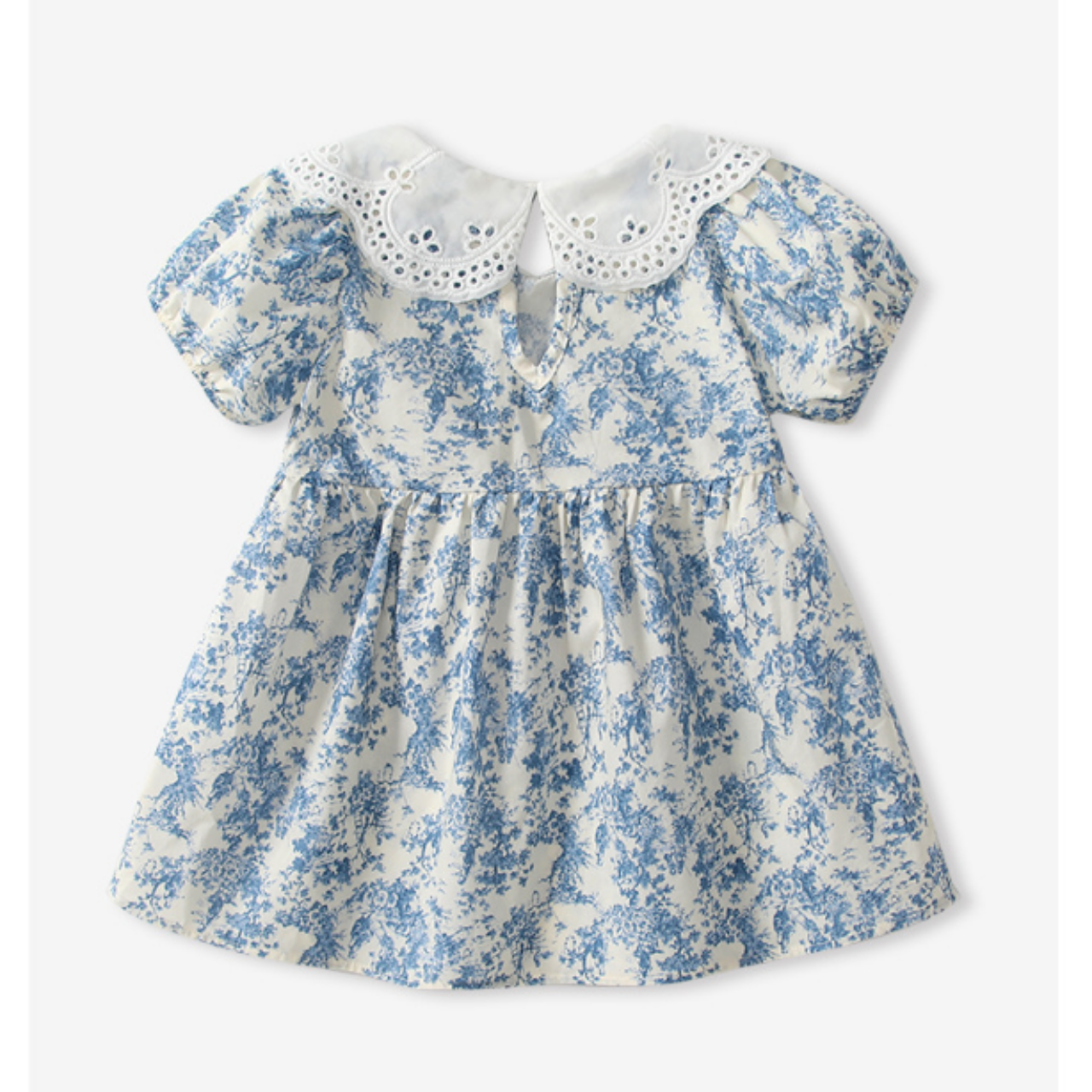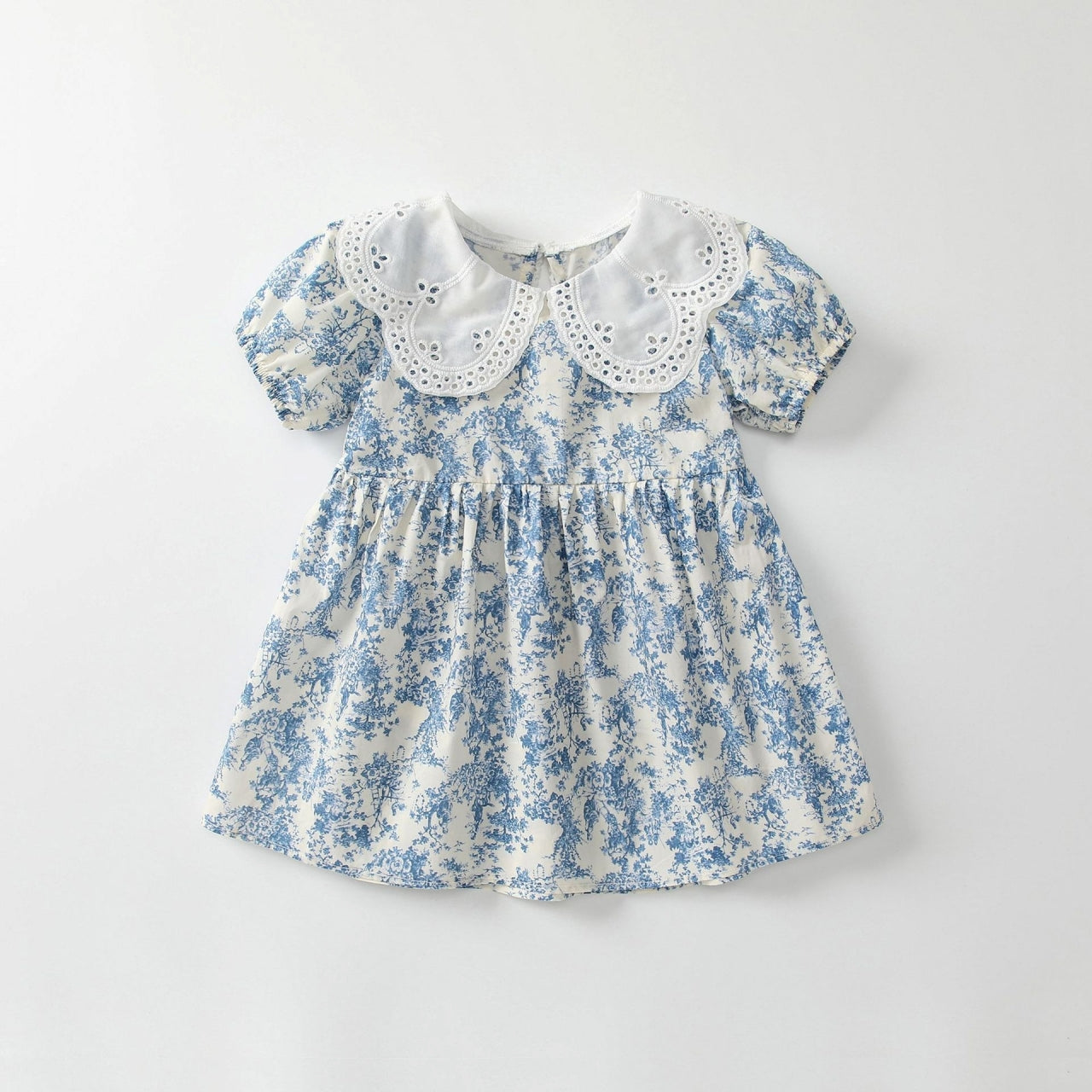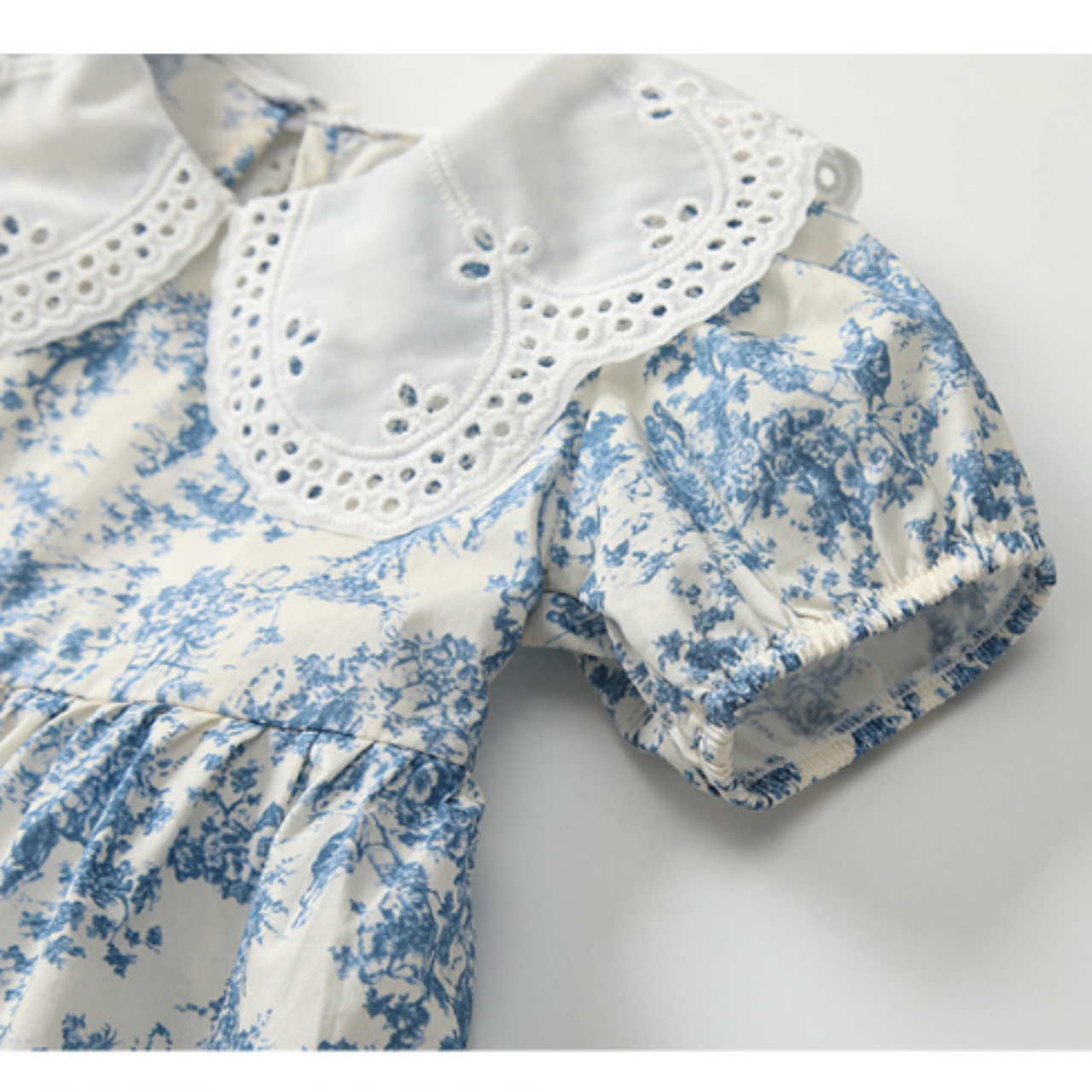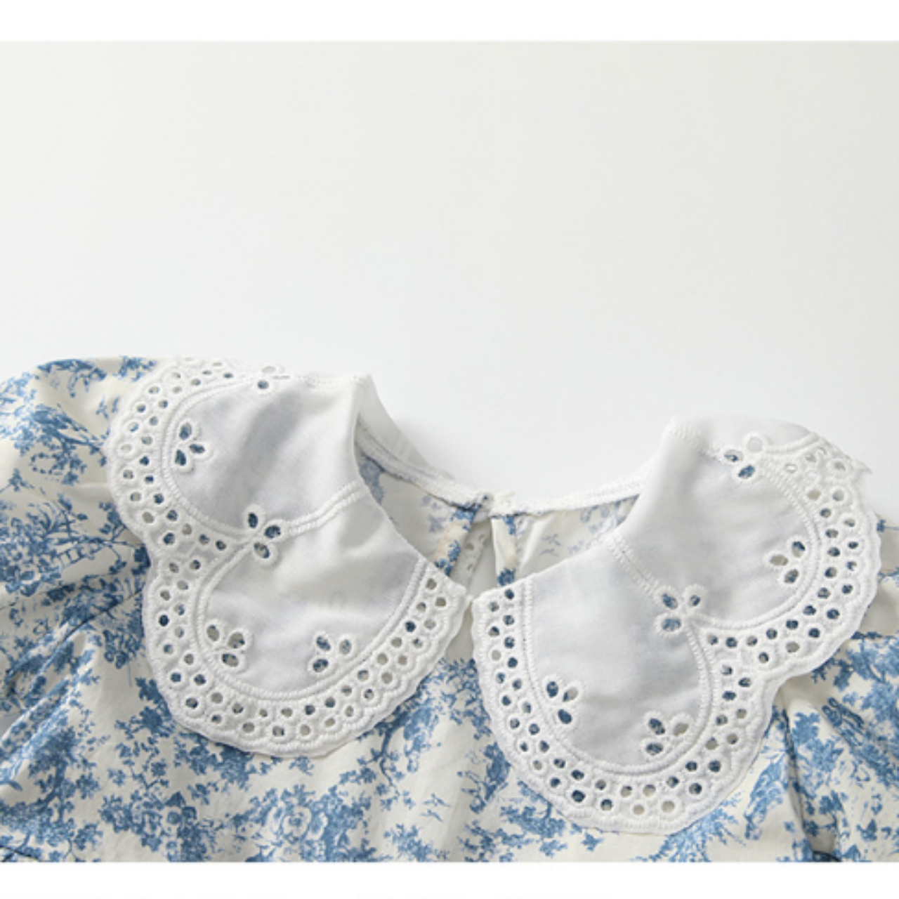 カットワークレースの襟が目を惹く、華やかなデザインのワンピース♪
