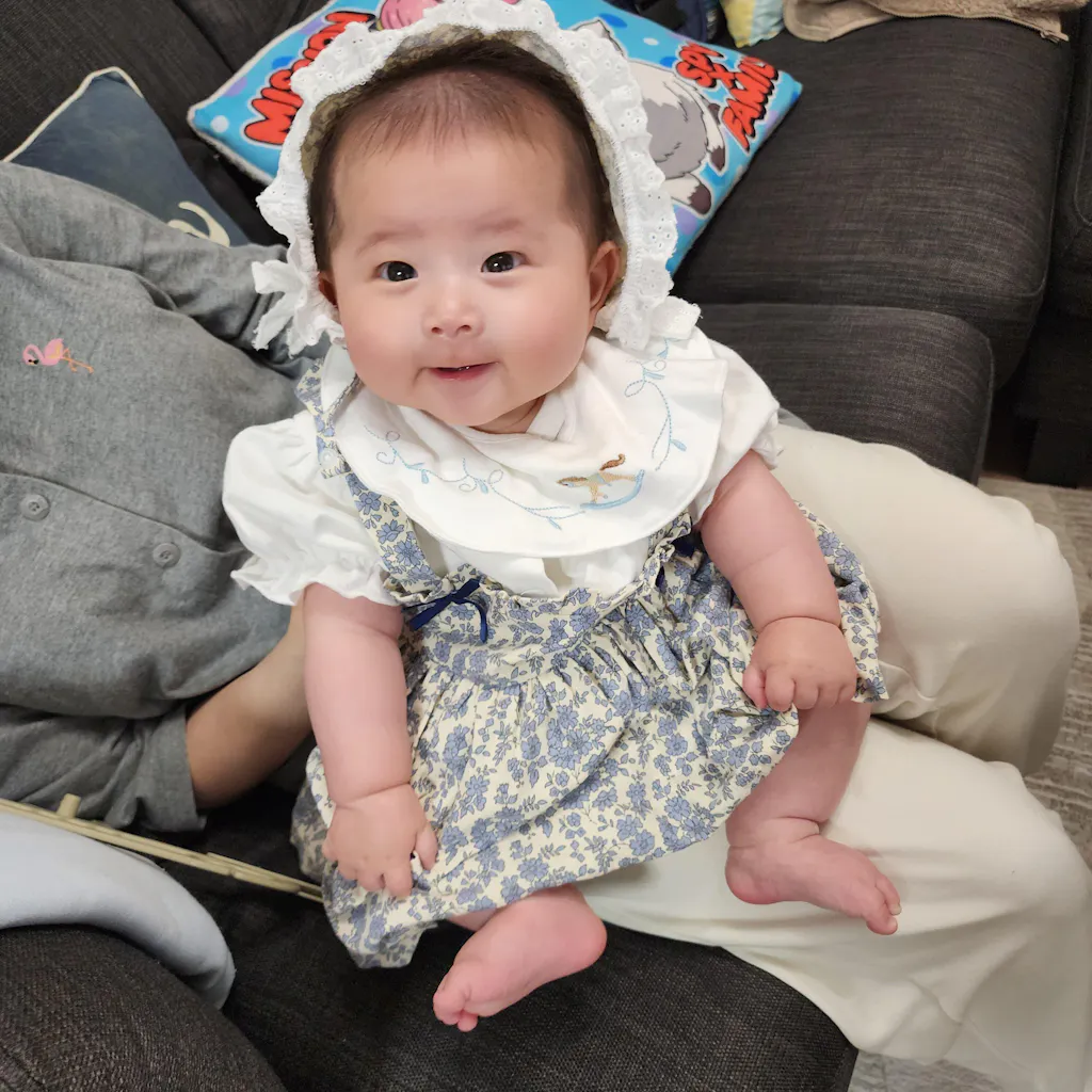 生地もとてもしっかりしていて、肌触りも良く、デザインも甘すぎず、袖のフワフワや、小花柄のスカートが可愛くて、お股のボタンがおむつ替えもさせやすくてとても良いです。